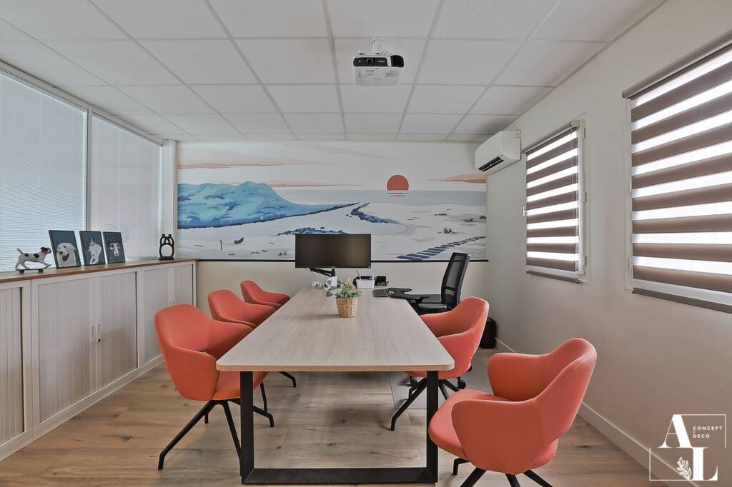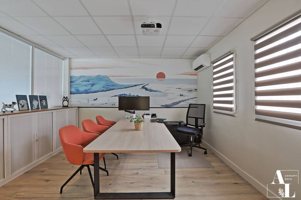 L’objectif principal était de faire en sorte que la clientèle se sente bien accueillie et à l’aise, tout en créant un environnement de travail agréable pour l’équipe de l’agence. Nous avons également travaillé avec des artistes locaux pour ajouter des éléments de décoration uniques, tels que les fresques murales d’Élodie Perrier (Lost in Land).